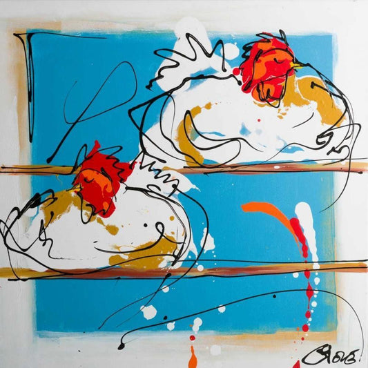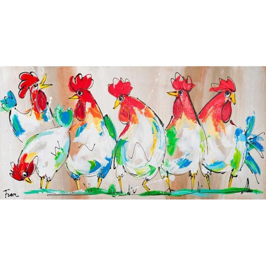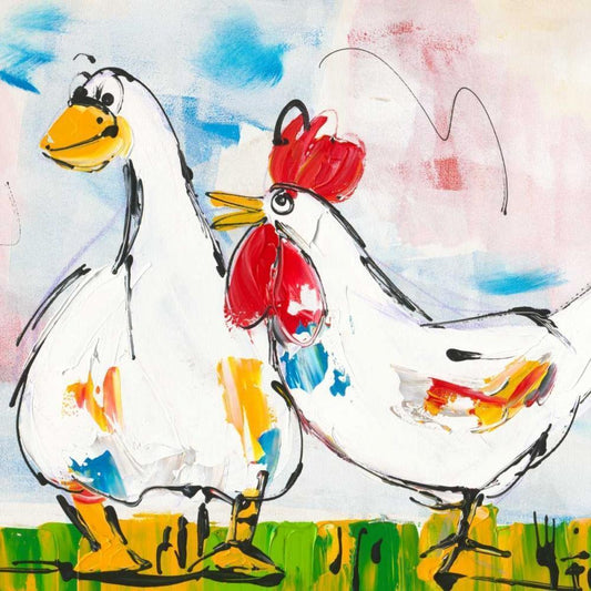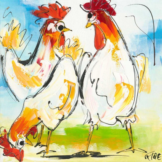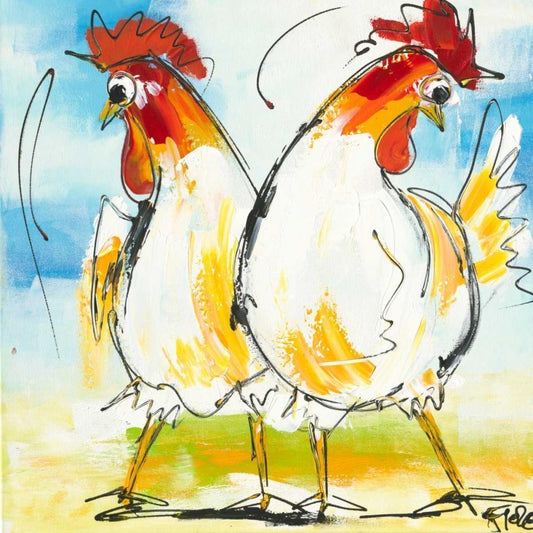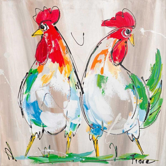 Cocks Talking Black Modern Wood Framed Art Print by Fiore, Art