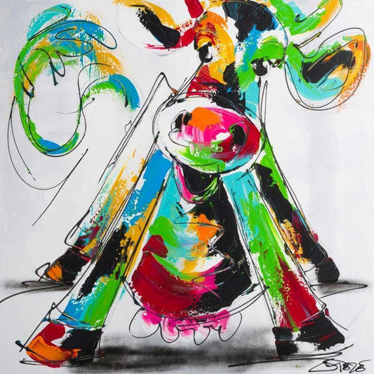 Dancing cow Black Modern Wood Framed Art Print by Fiore, Art
