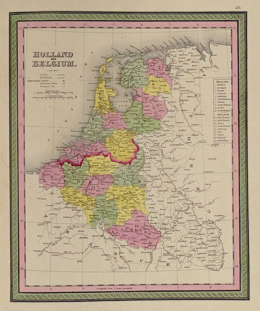 Holland and Belgium 1849 White Modern Wood Framed Art Print with Double Matting by Vintage Maps