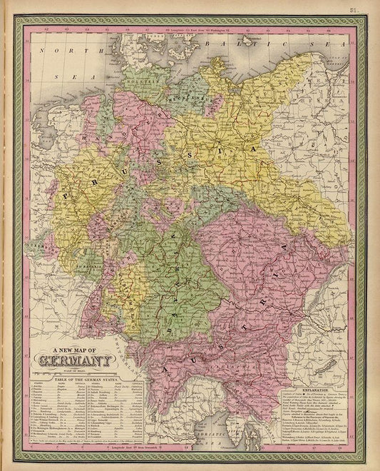 Germany 1849 White Modern Wood Framed Art Print with Double Matting by Vintage Maps