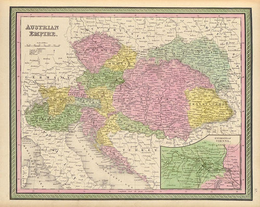 Austrian Empire 1849 White Modern Wood Framed Art Print with Double Matting by Vintage Maps