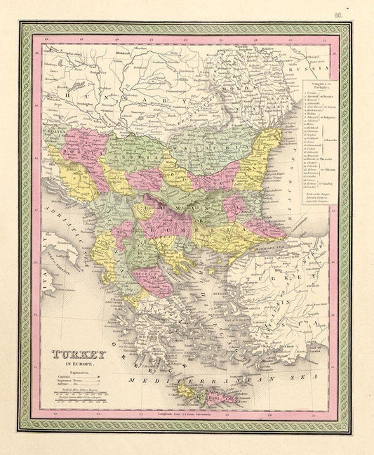 Turkey 1849 White Modern Wood Framed Art Print with Double Matting by Vintage Maps