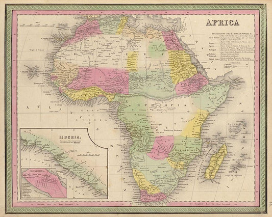 Africa 1849 White Modern Wood Framed Art Print with Double Matting by Vintage Maps
