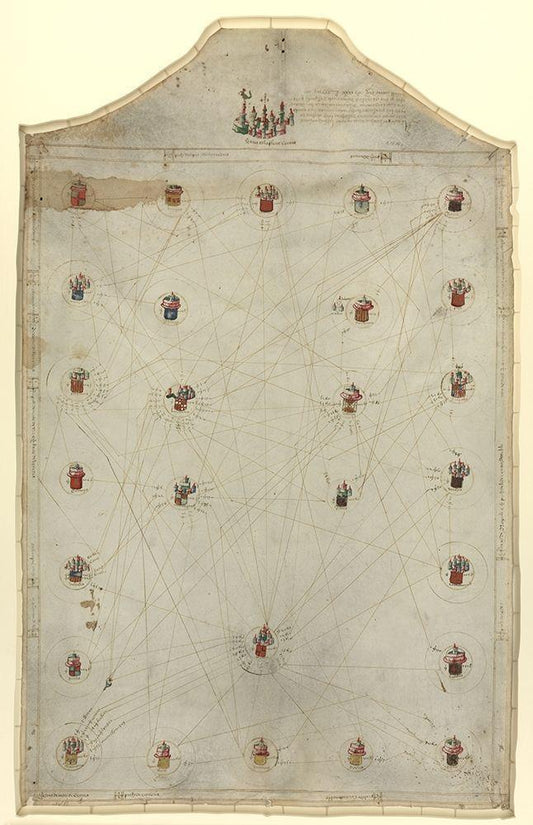 Chart of Weights and Measures in Seaports 1484 White Modern Wood Framed Art Print with Double Matting by Vintage Maps