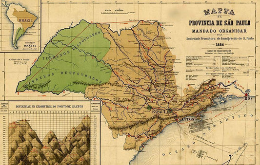 Sao Paolo Brazil 1886 White Modern Wood Framed Art Print with Double Matting by Vintage Maps