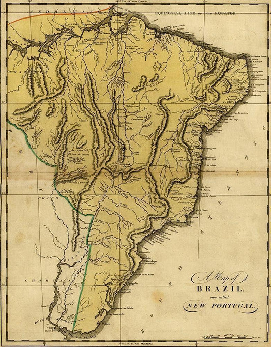Brazil New Portugal 1814 White Modern Wood Framed Art Print with Double Matting by Vintage Maps