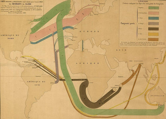 World Emigration Patterns 1862 White Modern Wood Framed Art Print with Double Matting by Vintage Maps