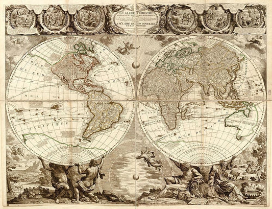 Globe in 1708 World White Modern Wood Framed Art Print with Double Matting by Vintage Maps