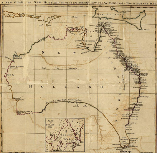 Australia AKA New Holland 1800 White Modern Wood Framed Art Print with Double Matting by Vintage Maps