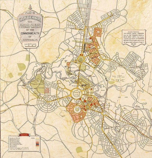 Canberra Australia 1927 White Modern Wood Framed Art Print with Double Matting by Vintage Maps