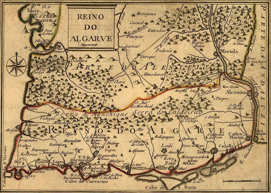 Portugal 1730 Reino del Algarve White Modern Wood Framed Art Print with Double Matting by Vintage Maps