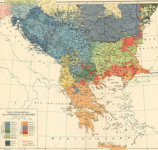 Ethnographic Map of the Balkan Peninsula 1918 White Modern Wood Framed Art Print with Double Matting by Vintage Maps