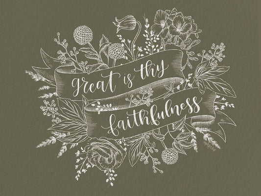 Great is Thy Faithfulness White Modern Wood Framed Art Print with Double Matting by Imperfect Dust