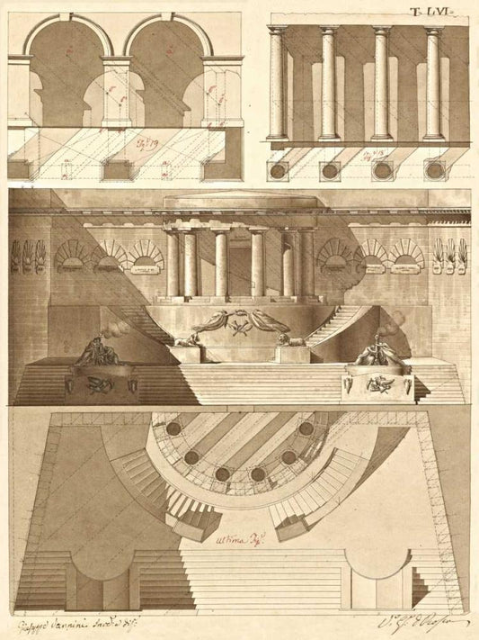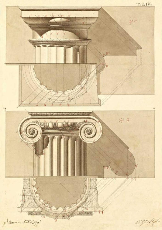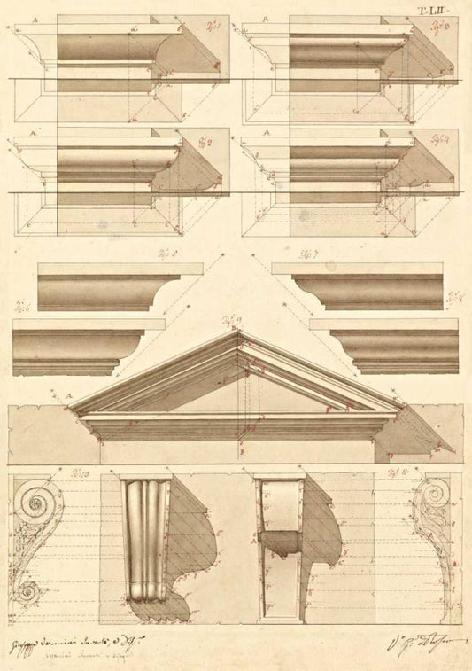Plate 54 for Elements of Civil Architecture, ca. 1818-1850 White Modern Wood Framed Art Print with Double Matting by Vannini, Giuseppe