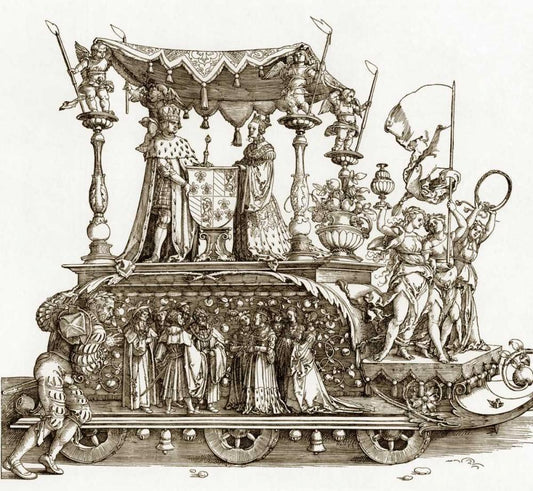 The Small Triumphal Car White Modern Wood Framed Art Print with Double Matting by Durer, Albrecht