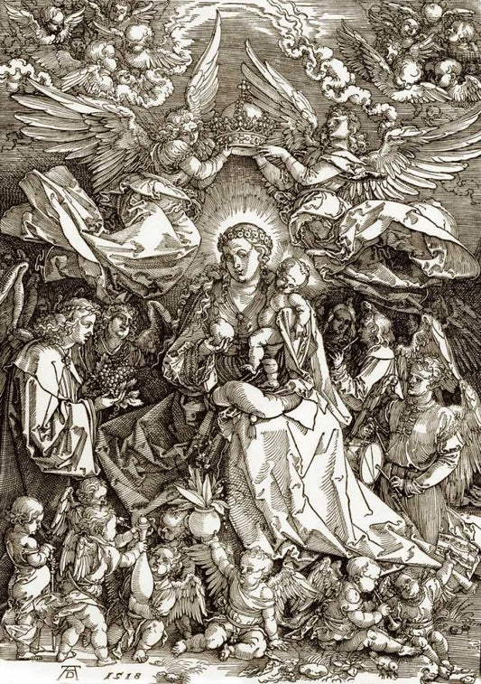 The Virgin Crowned By Two Angels White Modern Wood Framed Art Print with Double Matting by Durer, Albrecht