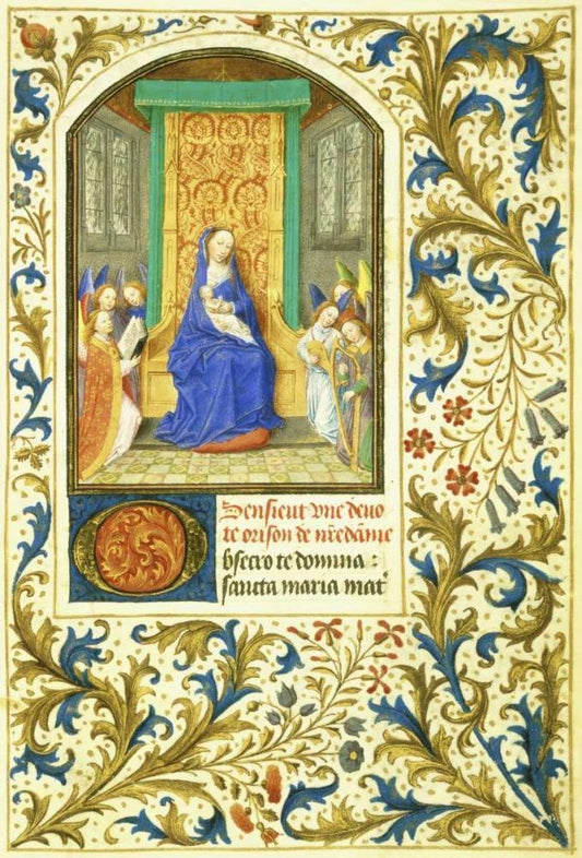 Virgin Enthroned between Angels: Book of Hours - Detail White Modern Wood Framed Art Print with Double Matting by Marmion, Simon