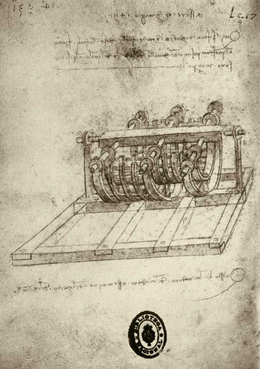 Mechanical Sketches White Modern Wood Framed Art Print with Double Matting by Da Vinci, Leonardo