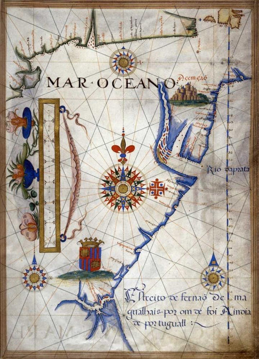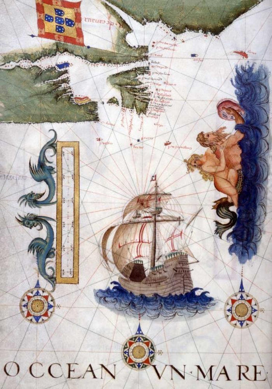 Mar Oceano - Portolan Atlas Illumination White Modern Wood Framed Art Print with Double Matting by Lopes, Sebastiano