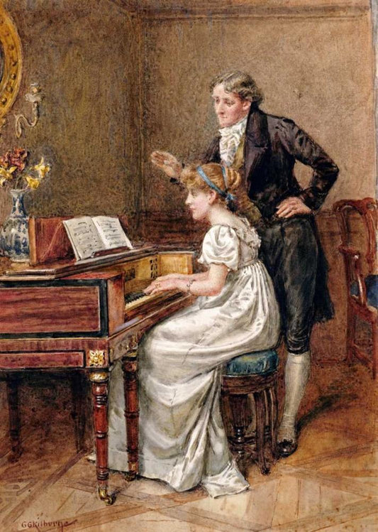 The Music Master White Modern Wood Framed Art Print with Double Matting by Kilburne, George Goodwin