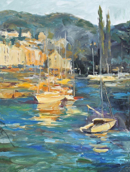 Harbor Side White Modern Wood Framed Art Print with Double Matting by Stevens, Allayn