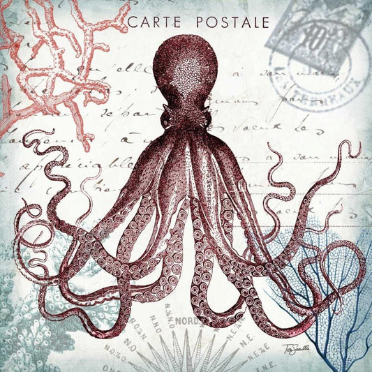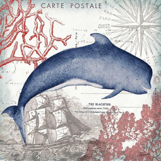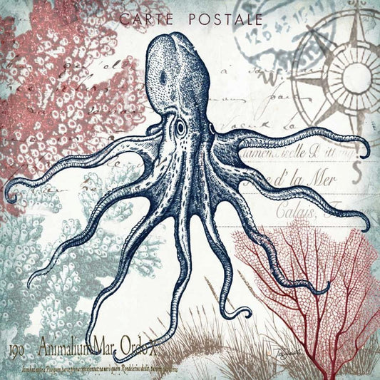 Coastal Sea Life I White Modern Wood Framed Art Print with Double Matting by Tre Sorelle Studios