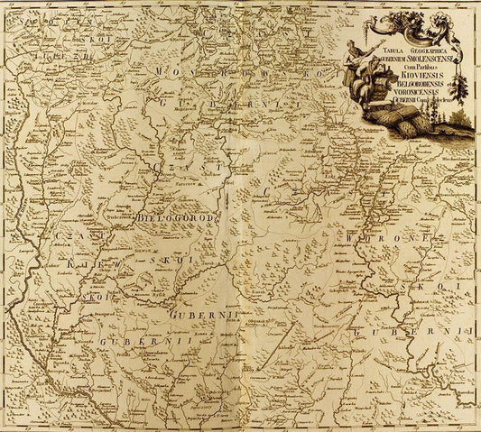 Kiev Smolensk and Voronezh Russia 1745 White Modern Wood Framed Art Print with Double Matting by Vintage Maps