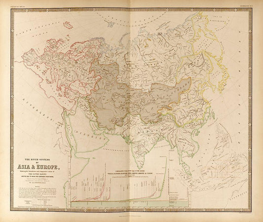 River Systems of Asia and Europe White Modern Wood Framed Art Print with Double Matting by Vintage Maps