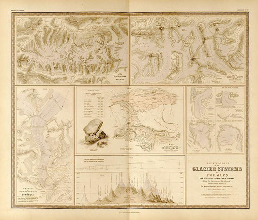 Mountains and Glacial Systems of the World White Modern Wood Framed Art Print with Double Matting by Vintage Maps