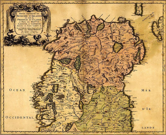 Ireland 1665 White Modern Wood Framed Art Print with Double Matting by Vintage Maps