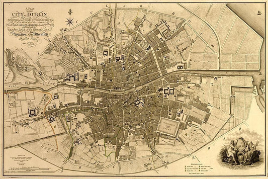 Ireland Dublin 1791 White Modern Wood Framed Art Print with Double Matting by Vintage Maps