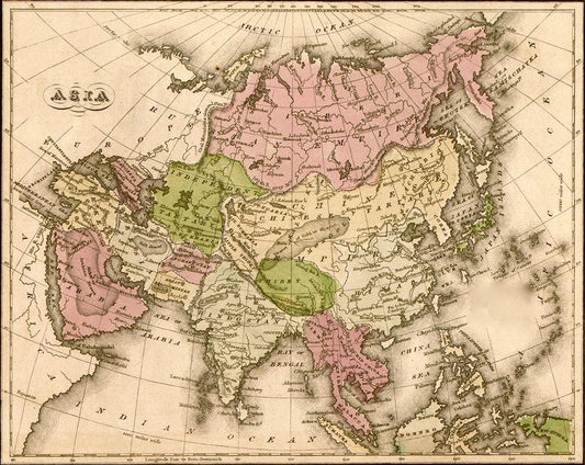 Asia 1835 White Modern Wood Framed Art Print with Double Matting by Vintage Maps