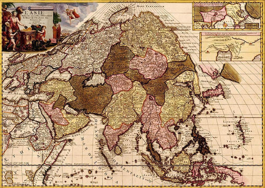 Asia 1680 White Modern Wood Framed Art Print with Double Matting by Vintage Maps