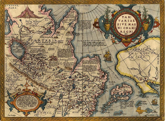 Asia 1570 White Modern Wood Framed Art Print with Double Matting by Vintage Maps