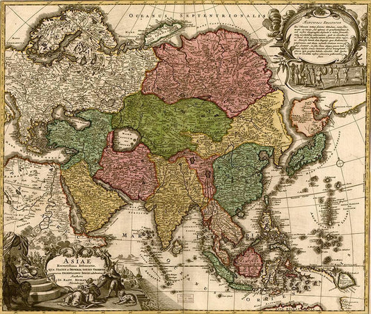 Asia 1700s White Modern Wood Framed Art Print with Double Matting by Vintage Maps
