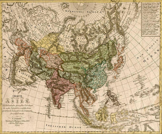 Asia 1805 White Modern Wood Framed Art Print with Double Matting by Vintage Maps