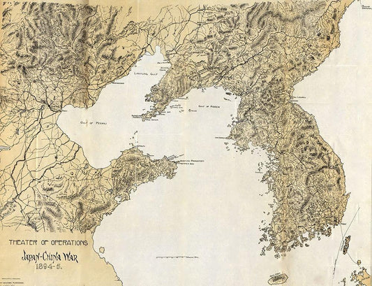 Theater of operations Japan China War 1894 White Modern Wood Framed Art Print with Double Matting by Vintage Maps