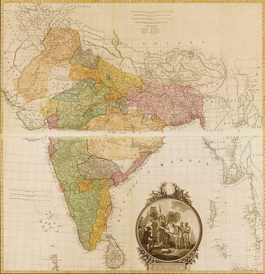 India Hindustan 1782 White Modern Wood Framed Art Print with Double Matting by Vintage Maps