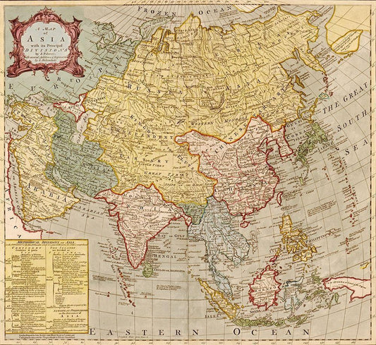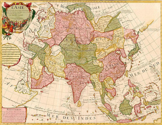 Asia 1700 White Modern Wood Framed Art Print with Double Matting by Vintage Maps