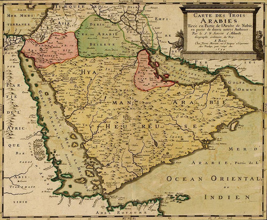 Three Arabias 1654 White Modern Wood Framed Art Print with Double Matting by Vintage Maps