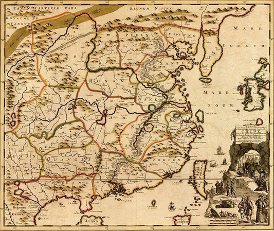China and Hainan Island 1737 White Modern Wood Framed Art Print with Double Matting by Vintage Maps