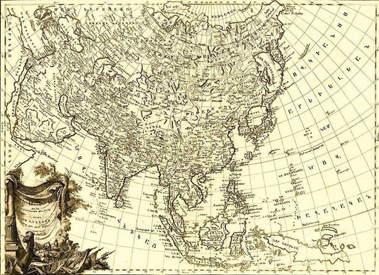 Asia 1787 White Modern Wood Framed Art Print with Double Matting by Vintage Maps