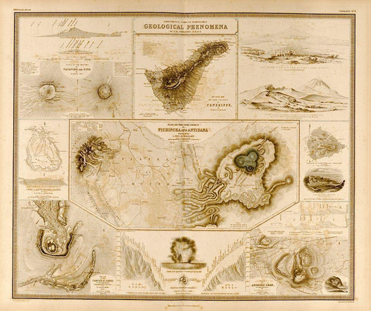 Geologic Phenomenon Volcanoes White Modern Wood Framed Art Print with Double Matting by Vintage Maps