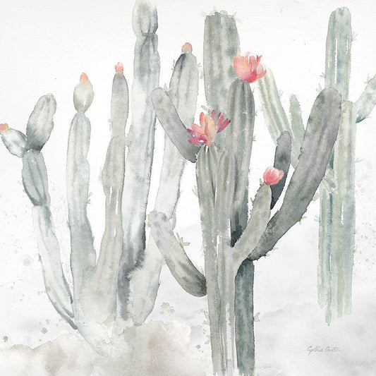 Cactus Garden Gray Blush I White Modern Wood Framed Art Print with Double Matting by Coulter, Cynthia