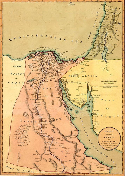 Egypt and Arabia Petrea White Modern Wood Framed Art Print with Double Matting by Vintage Maps