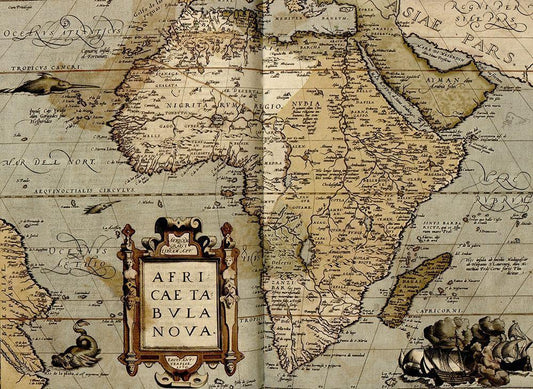 Ortelius Africa 1579 White Modern Wood Framed Art Print with Double Matting by Vintage Maps