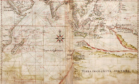 Navigational Map of the Indian Ocean 1630 White Modern Wood Framed Art Print with Double Matting by Vintage Maps