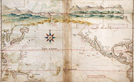 Portuguese map of the North Pacific 1630 White Modern Wood Framed Art Print with Double Matting by Vintage Maps