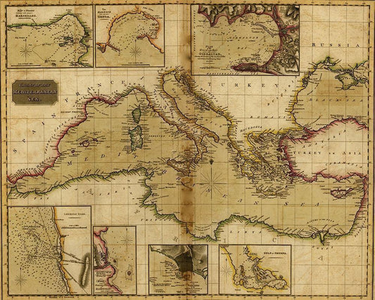 Mediterranean Sea White Modern Wood Framed Art Print with Double Matting by Vintage Maps