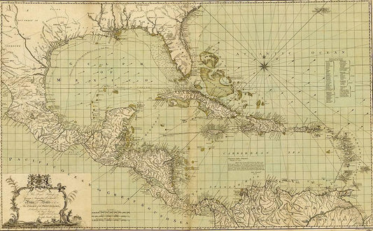 Chart of the West Indies 1796 White Modern Wood Framed Art Print with Double Matting by Vintage Maps